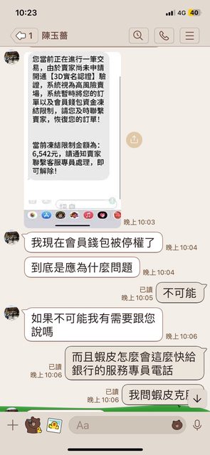 推 mxie: 我也遇到同一個賣家,是詐騙,也是用訂單凍結,要我聯繫客服 10/05 09:00