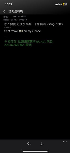 → xd4gsd4r: 賣個東西換了三個LINE ID.... 最一開始就很可疑了 10/05 10:09