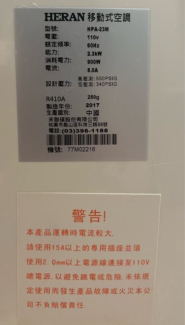 標題[交易]售 4000 禾聯110V移動式空調機(HPA-23M