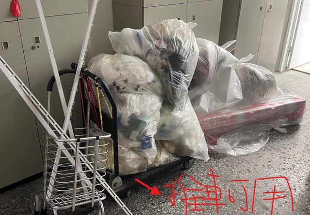 垃圾約10包,除了黑色推車及推車上的彈性繩外,都要丟棄