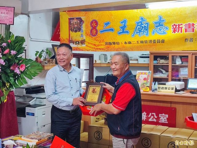 歷史2年編著的永康「二王廟」廟志,完成出版。(記者吳俊鋒攝)