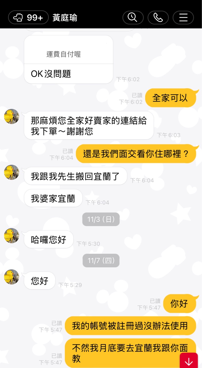 → jessica0710: 她會叫妳店到店,然後說被凍結,很好心的傳假的客服 11/15 19:06