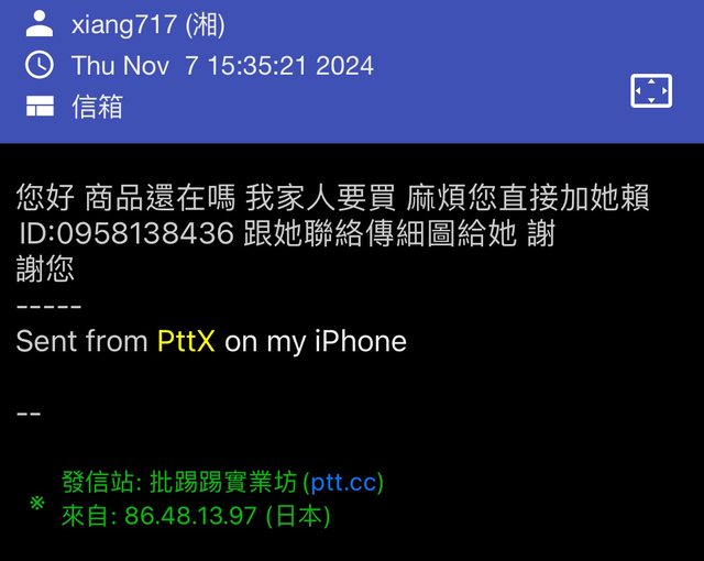 推 b3418: 我也收到一樣的詐騙帳號欸!Ptt淪陷了 11/15 18:30