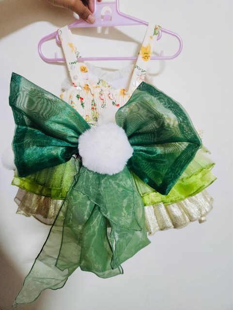 90碼綠色禮服,背面有大蝴蝶結,可拆洗,