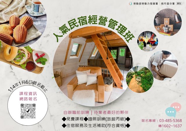 標題[情報] 【課程推薦-人氣民宿經營管理班第一期】