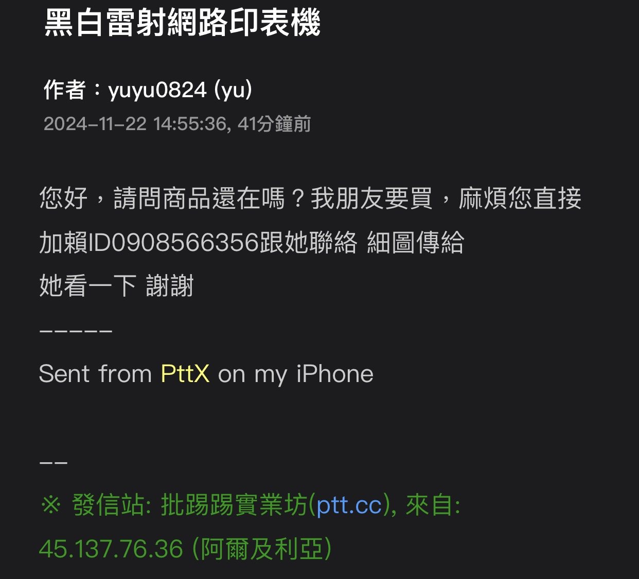 → Olivemew: 難怪我要回站內信都失敗,原來是詐騙 11/22 22:35