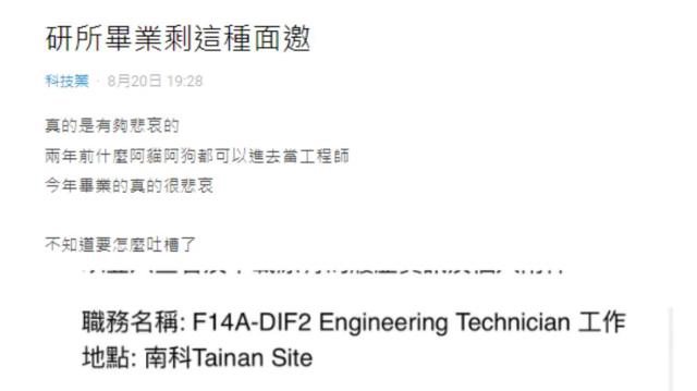 → oiukjyhntgb : 現在差不多真的就這樣...工科碩差不多就系統廠或面 08/22 14:21