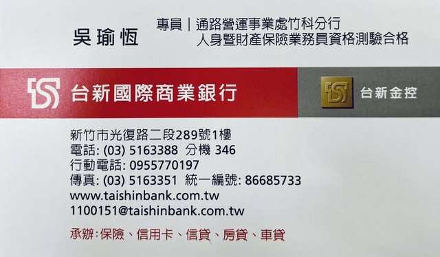 0955770197 (同line)台新銀行吳專員