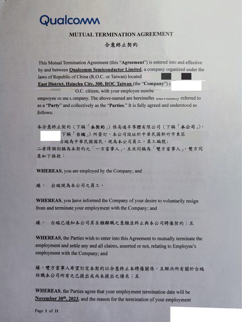 推 jamesho8743 : 哈哈 高通也一樣 這就是資方 叫你簽志願被離職書 這 09/21 18:58