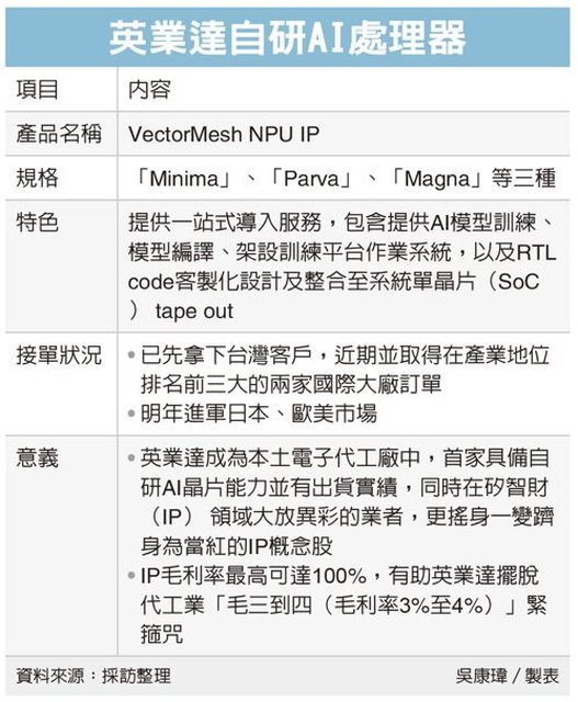 英業達(2356)強攻AI矽智財(IP)與自研AI晶片報捷,昨(12)日宣布拿下在產業地位