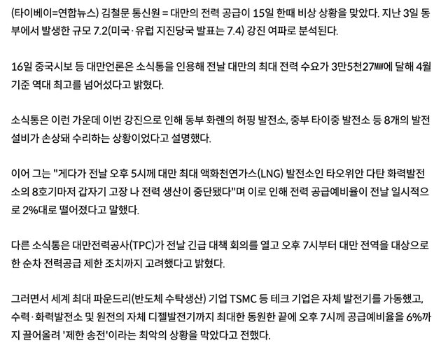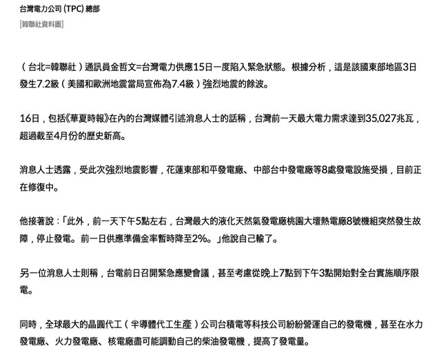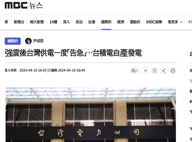 標題: [爆卦] 「台灣險停電驚動台積電」登韓聯社+MBC
