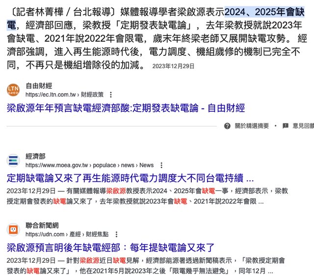 報導還引用了被經濟部酸「定期發表缺電輪」的梁教授 (金融時報也引用過他XD)