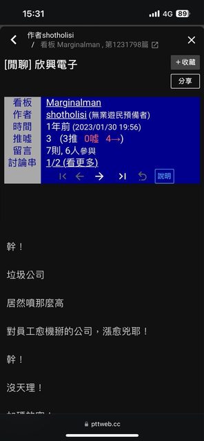 推 number89757 : 身為前員工,說一句實話這間公司就是垃圾中的垃圾ㄏ 05/08 10:00