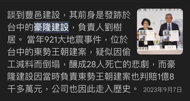 推 wcre : 而且火災不算啥,豐邑改名前是台中豪隆建設05/27 13:32