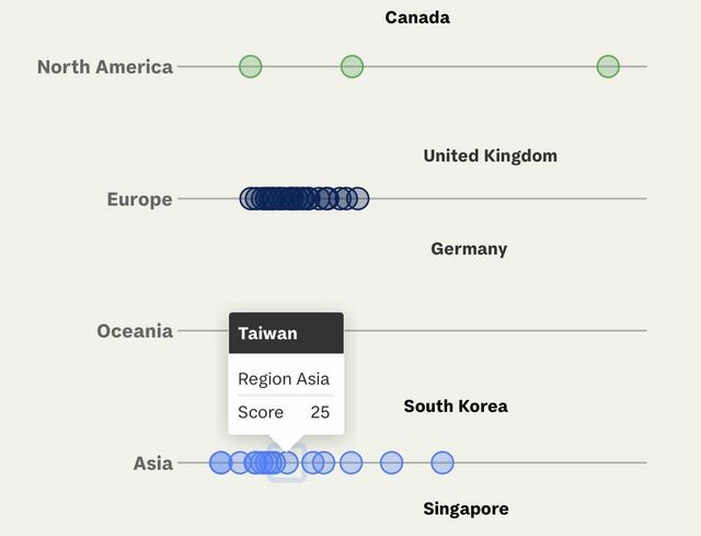 排第二的中國62分,第三的新加坡50分