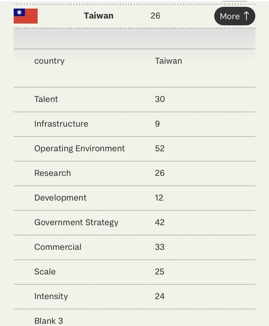 台灣的AI能力排在全球第26