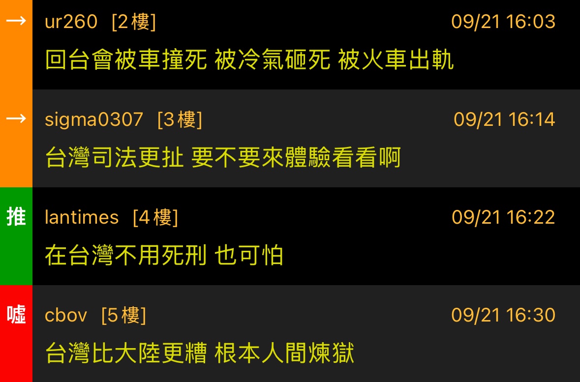 噓 cbov : 台灣比大陸更糟 根本人間煉獄 09/21 16:30