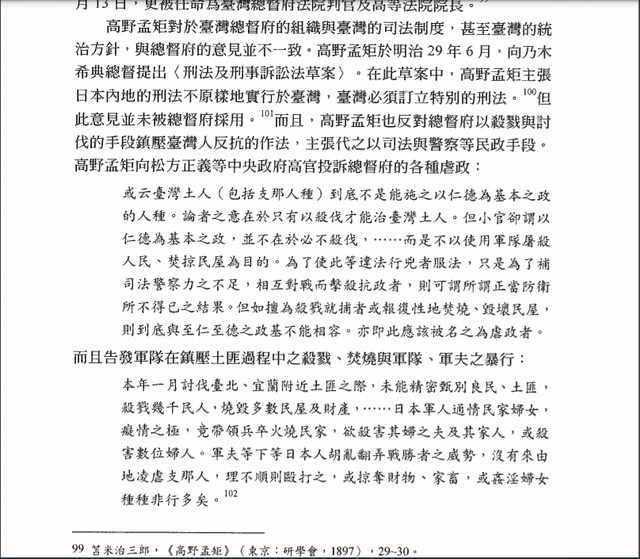 台灣高等法院院長 高野孟矩 跟日本中央投訴總督府和軍隊 在台灣的姦淫燒殺暴行!