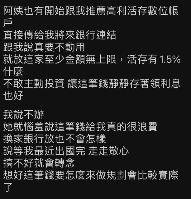→ yokann : 用個高利定存應該是蠻好的 39.12.32.129 09/30 18:14