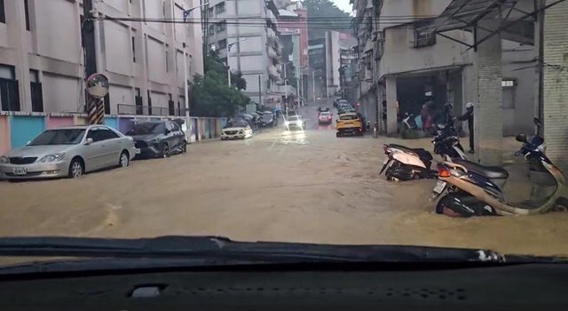 產生共伴效應,基隆單日雨量高達408毫米,打破當地歷史紀錄;驚人雨勢導致多處淹水