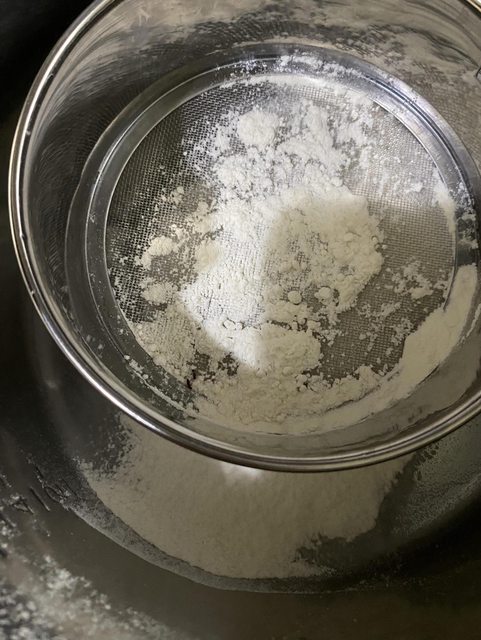 由於當下不能判斷蟲的來源到底是家裡的糖還是剛買不到一個小時的麵粉,我抱持著再試一次的心態把鍋子和篩子都洗乾淨,再倒了一次麵粉….