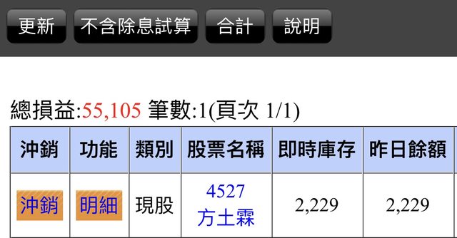 台股賺55,105元
