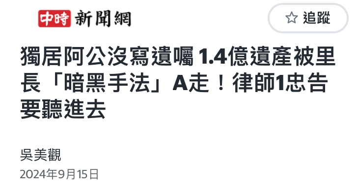 推 chrisfox713 : 遺屬先立好,想給誰就給誰 223.138.243.88 10/15 16:13