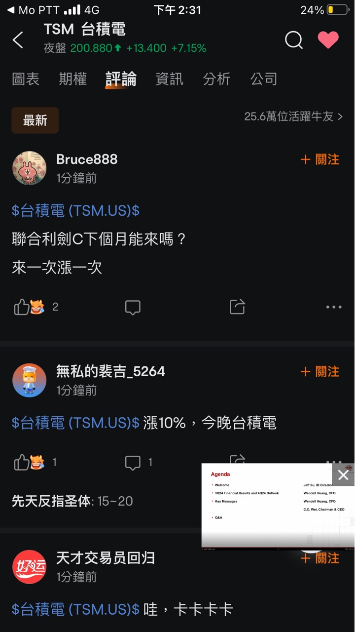 台積電法說會開獎!今(17)日公布2024年第三季財務報告,合併營收約新台幣7,596億9