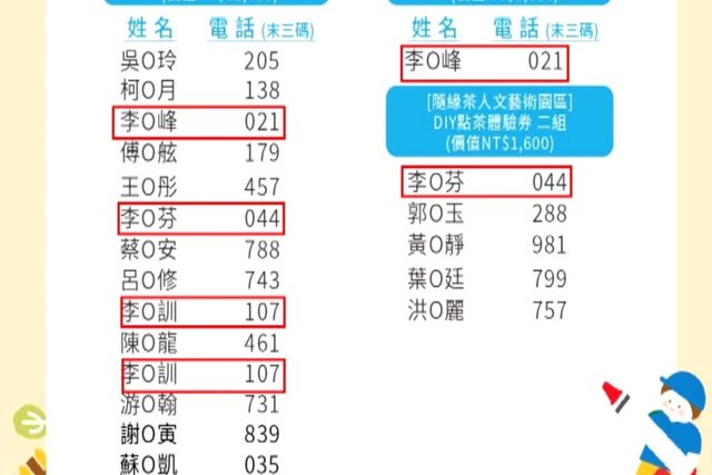 抽獎,獎項豐富多元,有獎金、有智慧型手機等等,但網友從中獎名單發現,除了姓李的