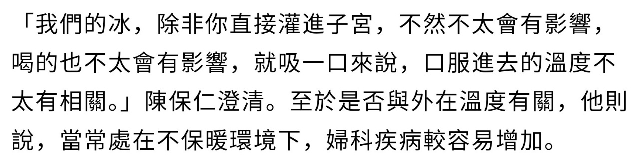 → etiennechiu : ↑婦產科醫生說吃冰會導致經痛的說 101.12.149.255 12/01 22:19