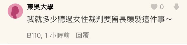 → du1031 : 據留言看來應該是想往上爬的女裁判必須留長髮才會比 07/10 21:43