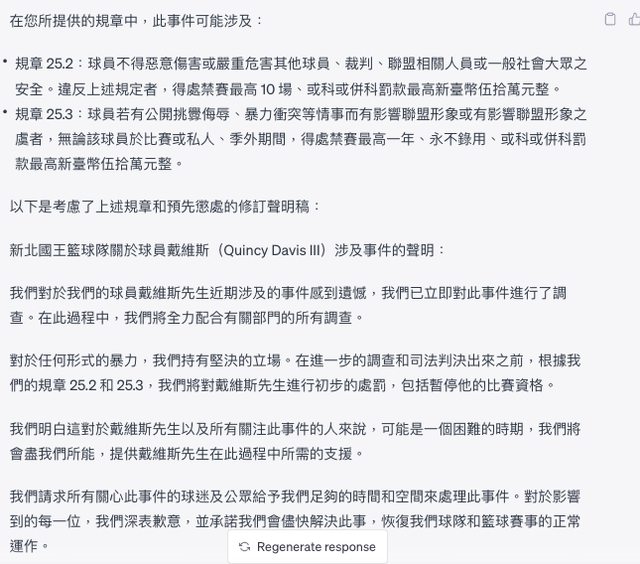 把兩個新北國王的聲明稿 + 今天的新聞給ChatGPT