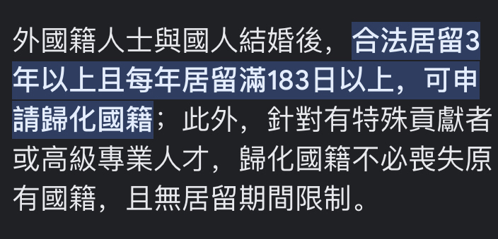 推 johnbill : 結婚申請入籍 是歸化啊 08/07 18:16