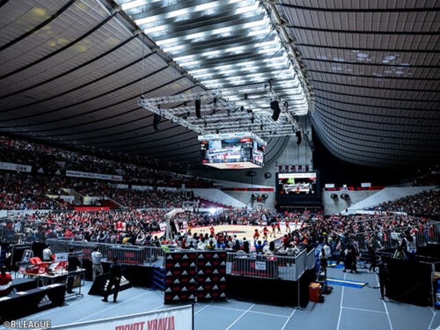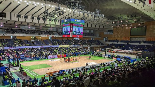 琉球黃金國王 沖繩體育館,大家熟悉也舉行過東超比賽,場中央這個長方形的大螢幕結