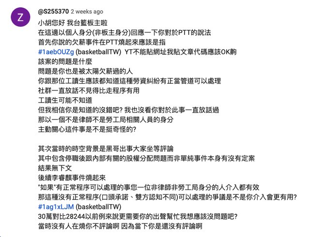 https://www.youtube.com/live/S6BLnPW1WFM?feature=share&t=8026 小胡回應ptt Z板的評論太陽事件 2:13:46 - 2:20:56 https://www.youtube.com/live/S6BLnPW1WFM?feature=share&t=8771 2:26:11 https://www.youtube.com/live/ROOcCwueWkk?feature=share Z板的留言 https://i.imgur.com/jCQBRwA.png