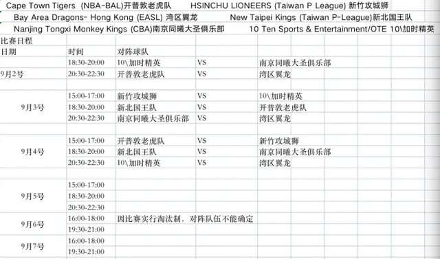 廈門職業籃球邀請賽9/2-9/8 走出世界,籃球無國界,本週我們將前往廈門參加「廈門職業籃球邀請賽」,透過本次賽 事與各國好手競爭交流,休賽季期間蛻變成更好的攻城獅!Let’s go Lioneers 轉播資訊將為大家持續追蹤,請獅紫軍為我們加油 賽程資訊 9/3(日)15:00-17:00 vs Overtime Elite 代表隊 9/4(一)15:00-17:00 vs 南非開普敦老虎隊 https://i.imgur.com/V93g0NI.jpg