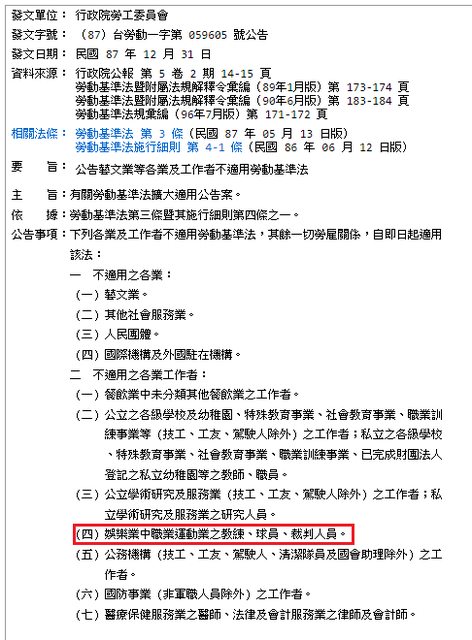 但並不妨礙被排除適用勞基法之工作者適用僱傭契約,僱傭是在民法上而非勞基法上的規 定,同樣被排除適用勞基法但適用僱傭契約的工作者是有的,主治醫師就是一種例子。 若信不過可以看這篇:https://reurl.cc/jDbk6p 民法僱傭不過有幾條規定而已: 第482條「稱僱傭者,謂當事人約定,一方於一定或不定之期限內為他方服勞務,他方給 付報酬之契約。」  →僱傭定義,符合現實運作。 第483條「如依情形,非受報酬即不服勞務者,視為允與報酬。未定報酬額者,按照價目 表所定給付之;無價目表者,按照習慣給付。」  →規定報酬額,保障勞工不是做功德。 第483條之1「受僱人服勞務,其生命、身體、健康有受危害之虞者,僱用人應按其情形為 必要之預防。」  →僱用人對受僱人之保護義務,本是球團應該做的。 第484條「僱用人非經受僱人同意,不得將其勞務請求權讓與第三人,受僱人非經僱用人 同意,不得使第三人代服勞務。當事人之一方違反前項規定時,他方得終止契約。」  →受僱人不得使第三人代服勞務,符合現實運作,職籃應不能找別人代打;僱用人非經 受僱人同意,不得將其勞務請求權讓與第三人,可能讓未來推行球員交易多一個須經當事 球員同意的條件,但也可能透過簽約時約定處理(參考中華職棒聯盟選手契約)。 第485條「受僱人明示或默示保證其有特種技能時,如無此種技能時,僱用人得終止契約 。」  →保障雇主取得約定的特種技能。 第486條「報酬應依約定之期限給付之;無約定者,依習慣;無約定亦無習慣者,依左列 之規定:一、報酬分期計算者,應於每期屆滿時給付之。二、報酬非分期計算者,應於勞 務完畢時給付之。」  →規定報酬給付時點,保障勞工不是做功德。 第487條「僱用人受領勞務遲延者,受僱人無補服勞務之義務,仍得請求報酬。但受僱人 因不服勞務所減省之費用,或轉向他處服勞務所取得,或故意怠於取得之利益,僱用人得 由報酬額內扣除之。」  →僱傭的重要規定,保障勞工不因雇主恣意不受領勞務而頓失財務來源。 第487條之1「受僱人服勞務,因非可歸責於自己之事由,致受損害者,得向僱用人請求賠 償。前項損害之發生,如別有應負責任之人時,僱用人對於該應負責者,有求償權。」  →受僱人服勞務而受損害之賠償請求權,常見於職災,有實際需要。 第488條「僱傭定有期限者,其僱傭關係,於期限屆滿時消滅。僱傭未定期限,亦不能依 勞務之性質或目的定其期限者,各當事人得隨時終止契約。但有利於受僱人之習慣者,從 其習慣。」  →職籃合約目前都定有期限,僱傭關係於期限屆滿時才消滅,對勞雇雙方都有保障。 第489條「當事人之一方,遇有重大事由,其僱傭契約,縱定有期限,仍得於期限屆滿前 終止之。前項事由,如因當事人一方之過失而生者,他方得向其請求損害賠償。」  →定有期限之僱傭契約只在遇有重大事由時才能提前終止,比委任安定。 看下來這幾條應該都沒什麼問題。 其次是社會保險(全民健保、勞保、勞退、勞工職業災害保險…)都規定雇主有投保義務 。不過這不是現在職籃球團就會為球員做的嗎? 因此,再次感嘆,職籃球團和球員間本來就應該簽僱傭契約,可以減少紛擾,增加契約安 定性。瀏覽職棒球員與球團的訴訟,似乎已固定肯定契約性質為僱傭(如:1997年三商虎 訴康明杉案、2000年林凱志訴那魯灣案https://reurl.cc/LA9m0y、2003年武建州訴興農 牛案https://reurl.cc/aV6kp3、2012年La New訴陳昭穎等人案https://reurl.cc/v79dnk 等),這次攻城獅若要與林秉聖或台新訴訟,委任二字可能使其大不利,委任契約依法可 隨時、不論理由終止可能會是爭議重點。看了一系列職籃案例,真心疾呼,職籃球團和球 員,應該簽的,是「僱傭契約」。 ---- 快打完這篇的時候,攻城獅已聲明提出告訴,那麼,就看合約上的委任二字會不會出來攪 局、就看公平交易委員會和法院對這則案例的實務法律判斷吧。 -- ※ 發信站: 批踢踢實業坊(www.ptt-site.org.tw), 來自: 111.240.27.208 (臺灣) ※ 文章網址: https://www.ptt-site.org.tw/basketballTW/M.1693477253.A.EA1