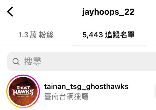 他的個人IG追蹤臺南台鋼獵鷹的IG帳號 https://i.imgur.com/VFC9w1z.png