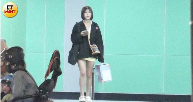 工作結束後的林可獨自搭捷運,在路邊講電話看似在等人。(圖/本刊攝影組) https://i.imgur.com/exAZAVJ.jpg