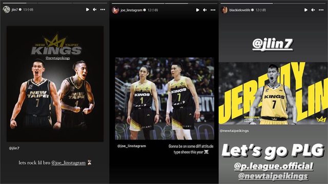 林書豪(左起)、林書緯、陳建州分別發出IG限時動態。(組合圖/翻攝自IG「jlin7」