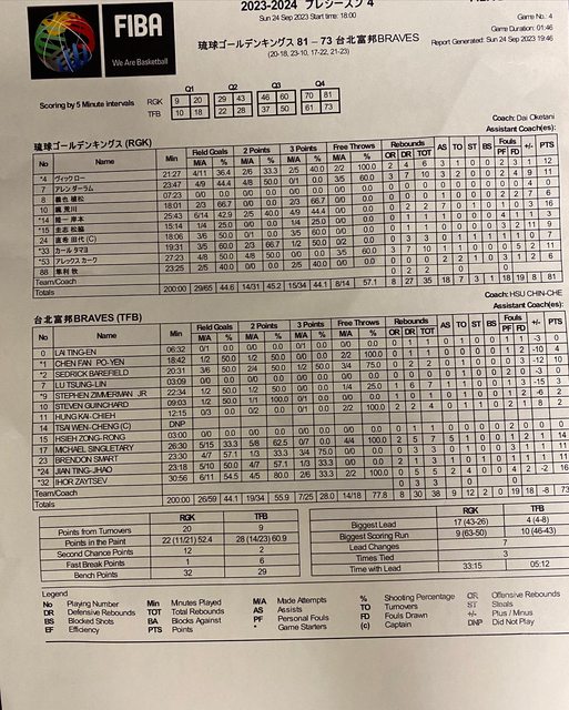 轉貼自 艾迪臉書 https://tinyurl.com/2s39zund P. LEAGUE+(#PLG)3連霸王者之師 #臺北富邦勇士,今在日本沖繩和B LEAGUE總冠軍琉球 黃金國王進行第2場「王者交流賽」,#勇士 第2節進攻當機僅得10分,打完半場以28比43 落後,下半場雖急起直追,終場仍以73比81惜敗,此次#EASL #東亞超級聯賽(簡稱 #東超 )季前熱身賽「沖繩行」以1和1負戰績作收。 #勇士 此役3洋將登錄讓前役在進攻端表現出色的 #強森(Chris Johnson)輪休,改登錄 # 塞瑟夫(Igor Zaytsev),搭配昨天有出賽的 #石門(Stephen Zimmerman Jr.)與 #辛特力 (Michael Singletary),塞瑟夫拿下全場最高16分,可惜昨天拿下全隊最高20分的辛特力 ,此役手感降溫15投5中,拿下14分、7籃板與5助攻,昨天有「雙10」進帳的石門則大為 失常,僅有3分與7籃板進帳。 勇士能夠咬住比數,主要是本土球員有跳出來,簡廷兆與石博恩都各貢獻11分,東超限定 亞洲外援 #巴爾菲特(Sedrick Barefield)另有10分進帳。勇士本土採4洋將輪替,這次沖 繩行也利用機會測試各種「#雙洋將」組合在場上搭配的狀況,舊將強森、辛特力與塞瑟 夫表現都可圈可點,就等新洋將石門找到更好的搭配組合與比賽節奏。 https://i.imgur.com/uwJ2Ui9.jpg