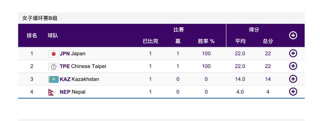 女籃B組戰績
