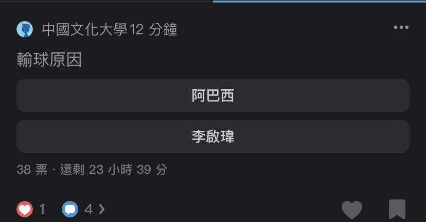 → sue5566 : 問題是出賽林庭謙沒有替補,然後如果阿巴西 劉錚下 09/28 22:09