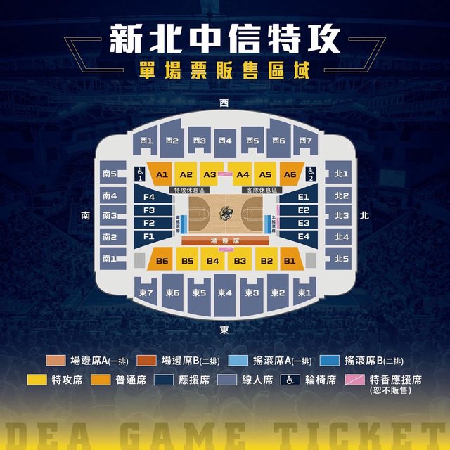 售票場次|10~12月份中信特攻主場例行賽事(共6場)