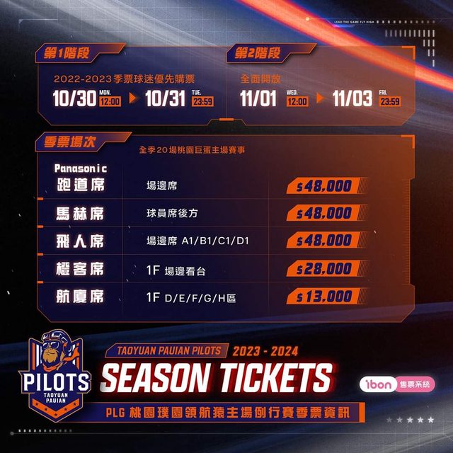 2023-24 P. League+ 桃園璞園領航猿例行賽主場售票