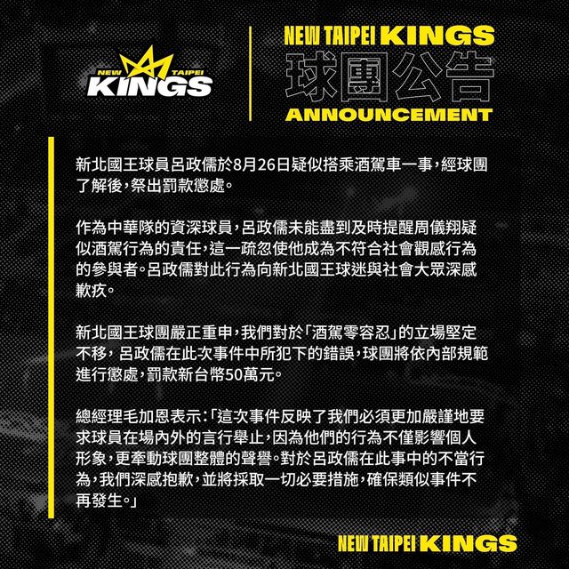 噓 laihom0808 : 國王這麼鬆喔,還以為比照中職勒 09/09 22:20