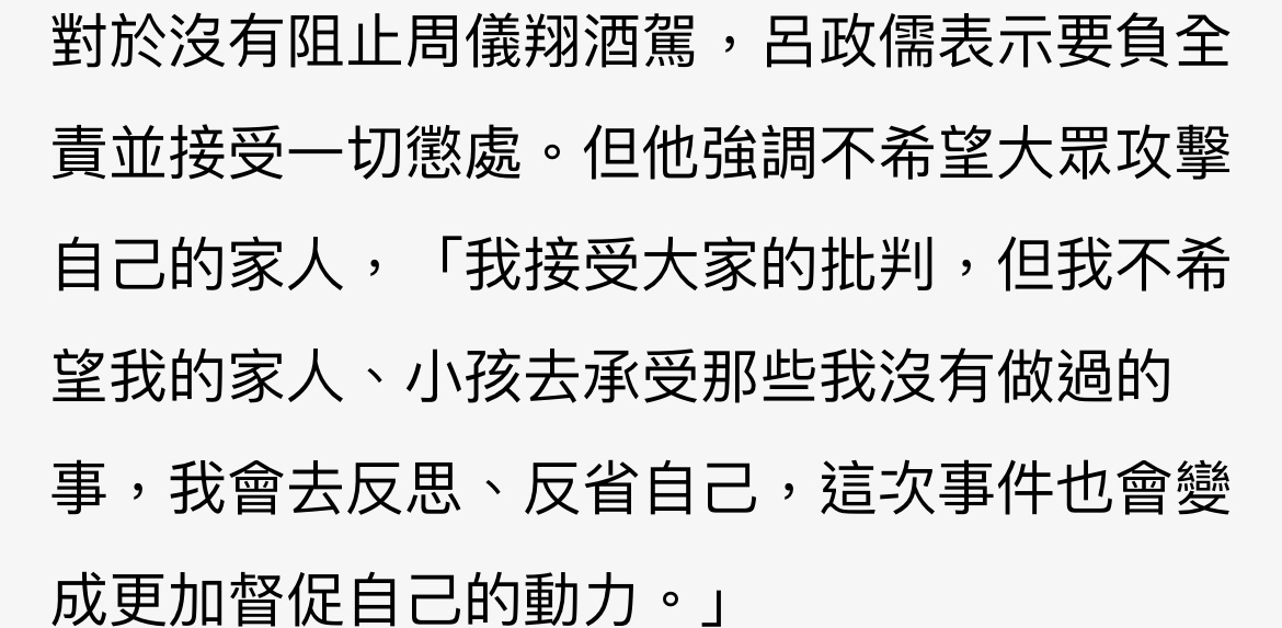 → cyc0307 : 呂本人有沒有喝酒一點都不重要吧 酒駕連坐也不會因 09/17 01:09