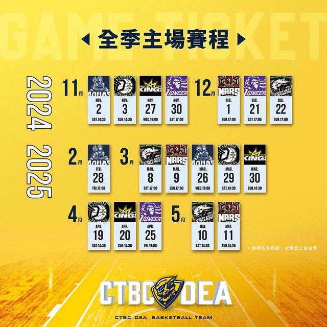 2024-25賽季 特攻基地11-12月單場票售票資訊
