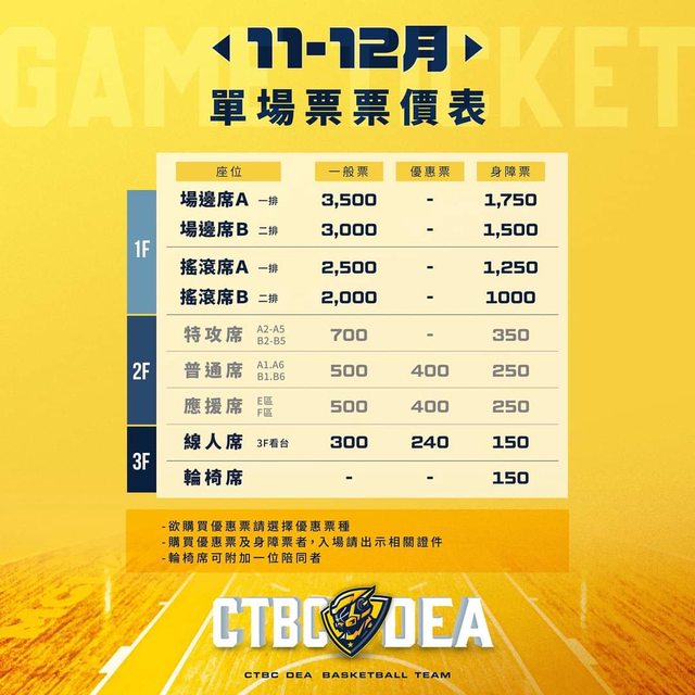 標題[情報] 中信特攻 2024-25賽季 11-12月售票資訊