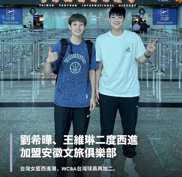 上一季效力於台電女籃的劉希曄、王維琳,今天啟程前往WCBA二度西進,加盟安徽文旅俱